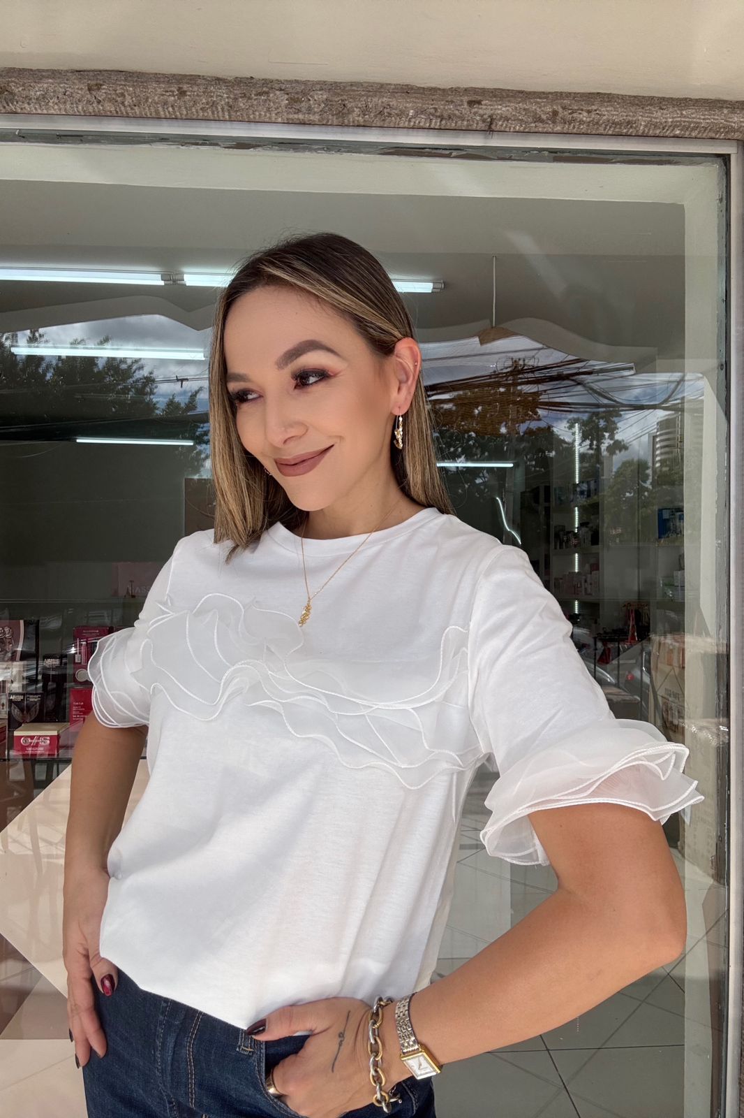 BLANCA MANGA CORTA VUELOS ORGANZA - S está en espera y se enviará tan pronto como vuelva a estar en stock