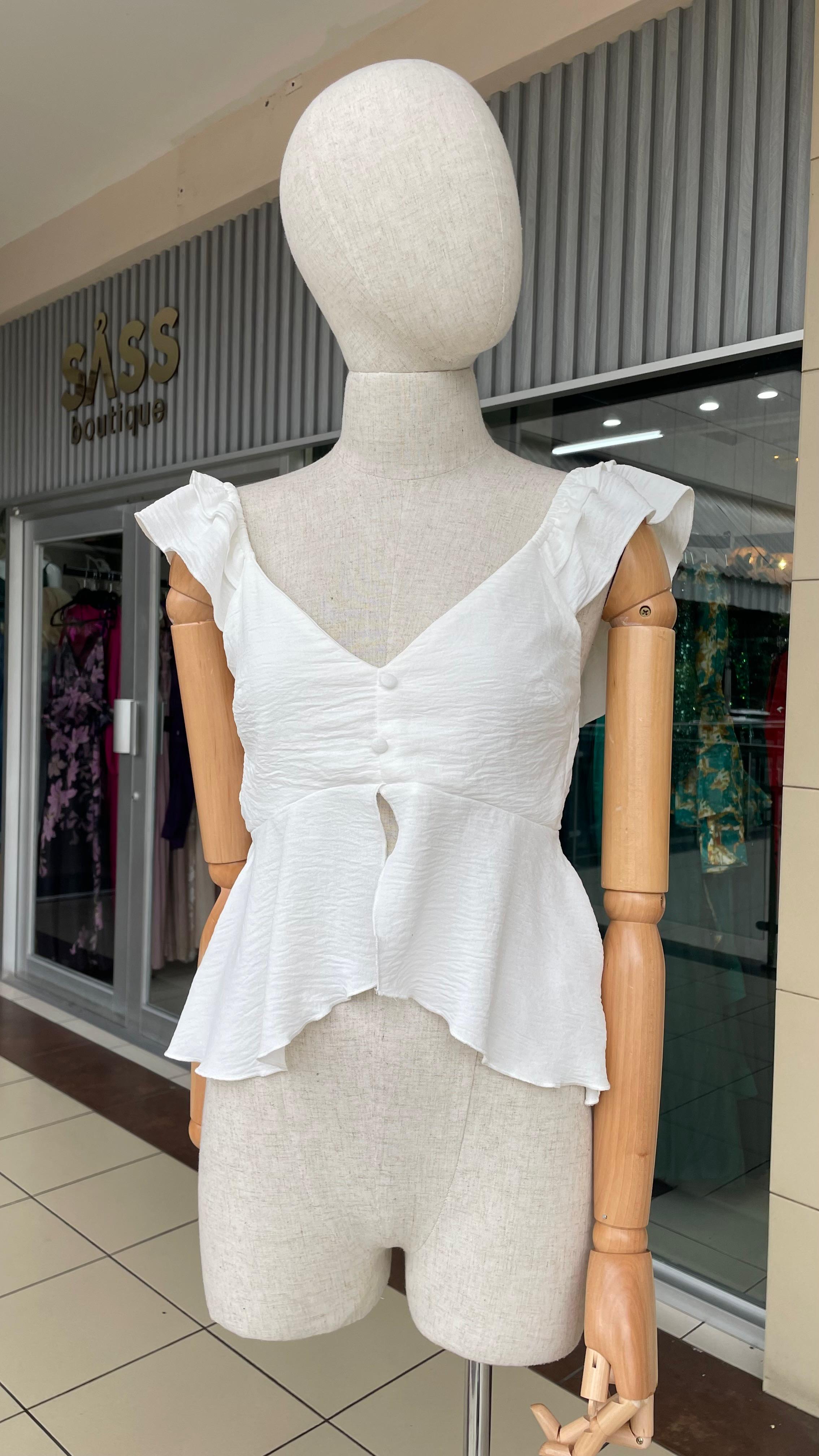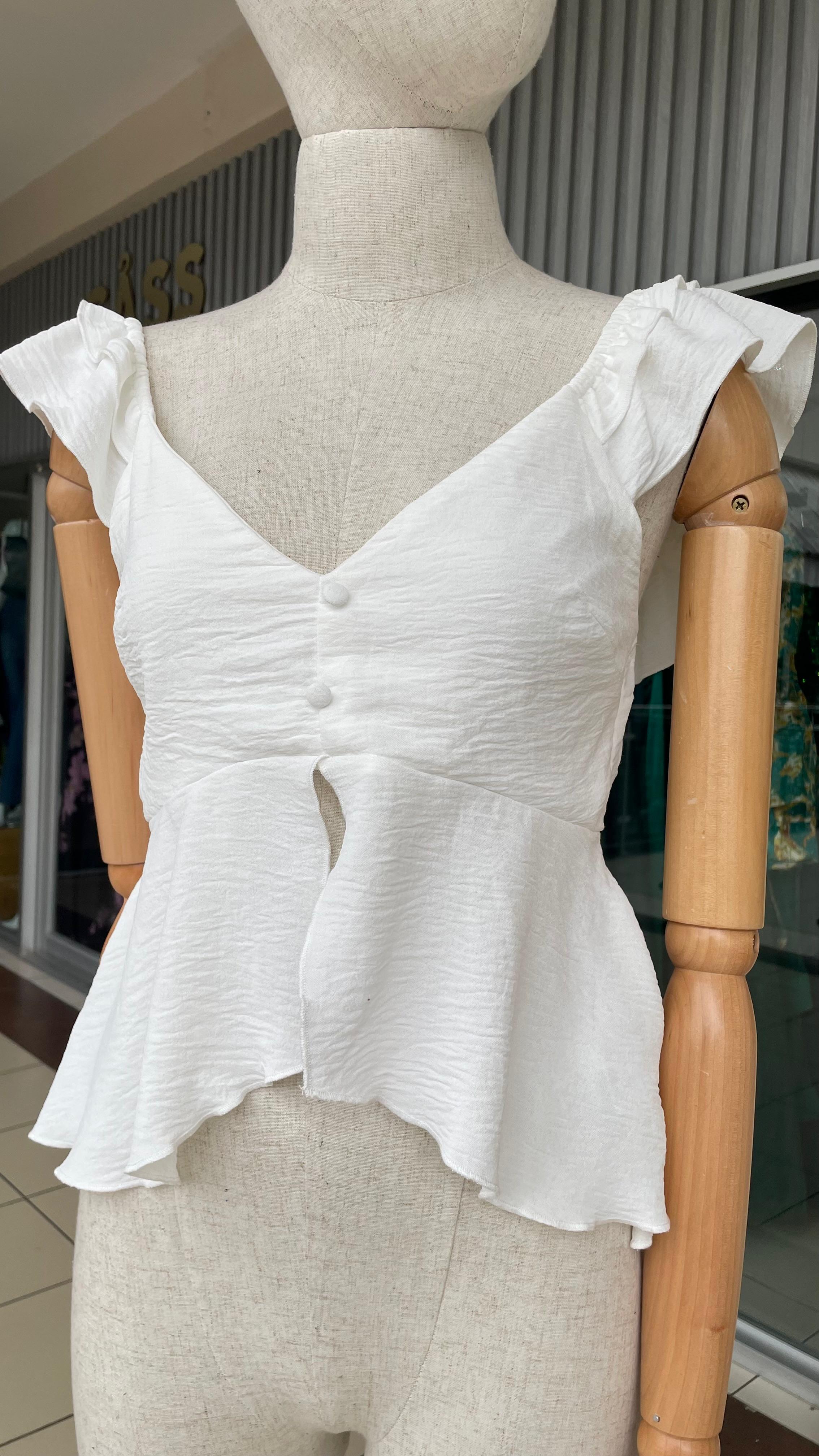 BLANCA ESCOTADA DE ABDOMEN VUELITO EN MANGA - S está en espera y se enviará tan pronto como vuelva a estar en stock