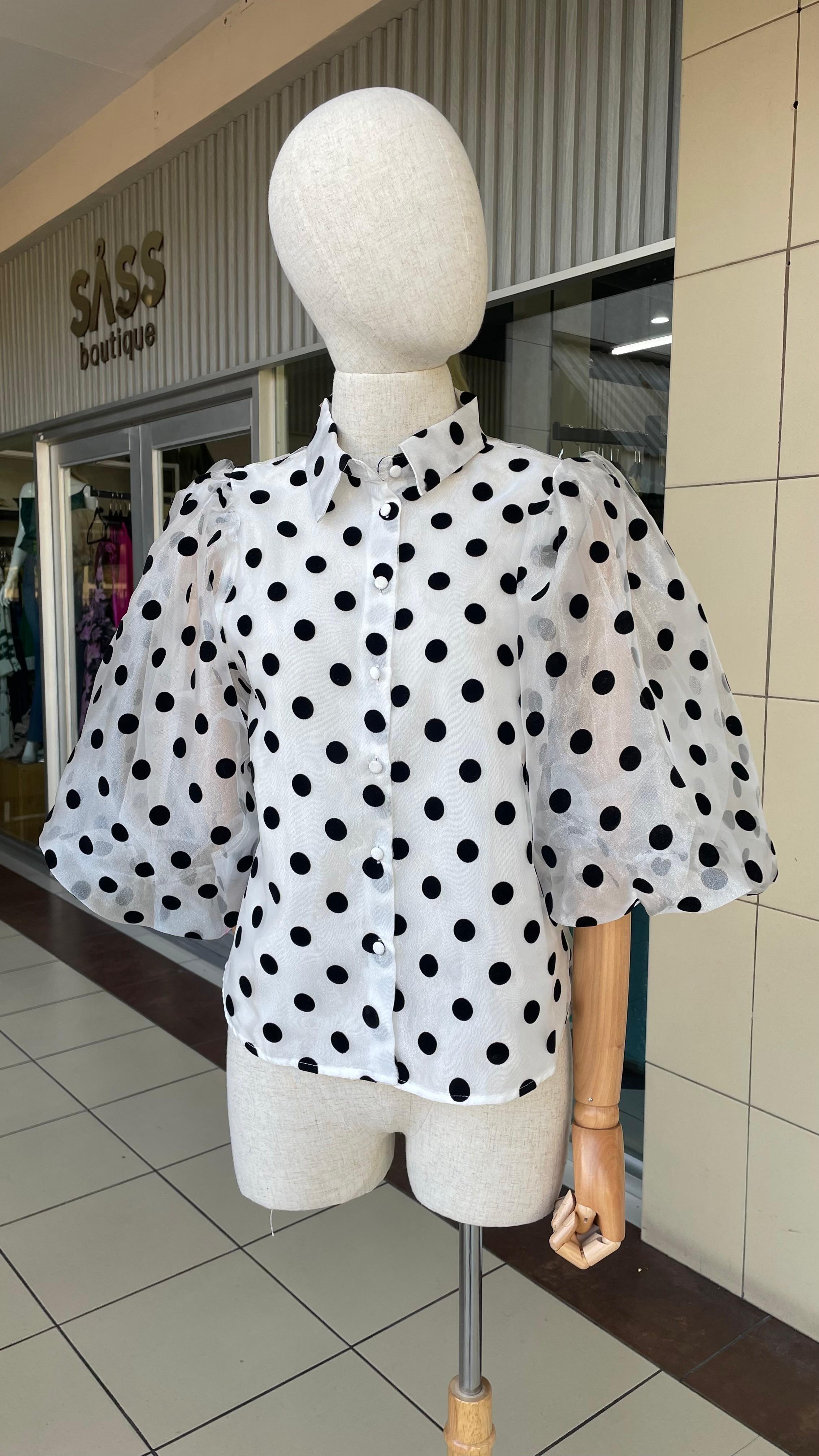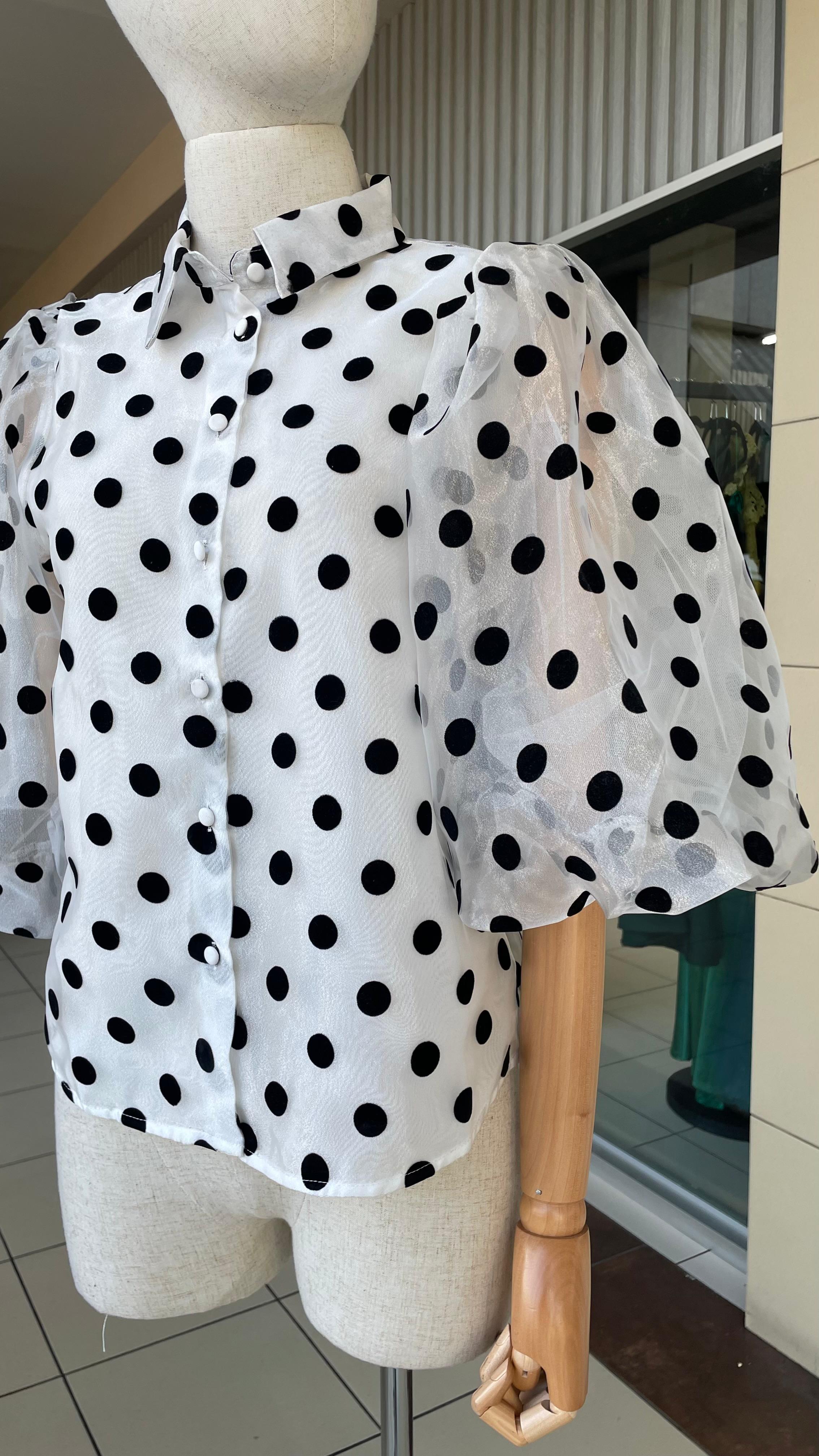 BLANCA MANGA PUFF POLKA DOTS HORGANZA - S está en espera y se enviará tan pronto como vuelva a estar en stock