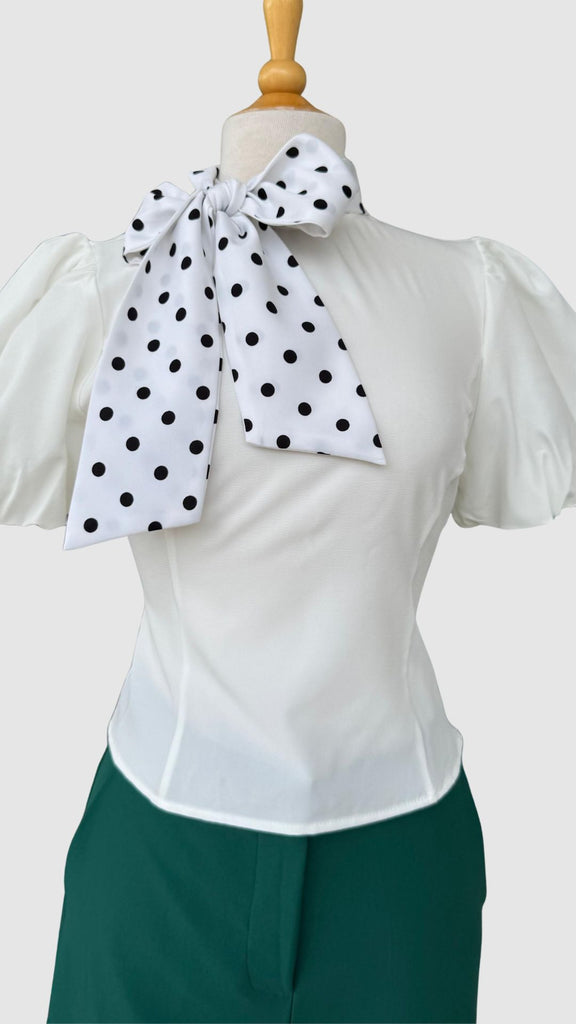 BLANCA MANGA PUFF CHONGO EN CUELLO - S está en espera y se enviará tan pronto como vuelva a estar en stock
