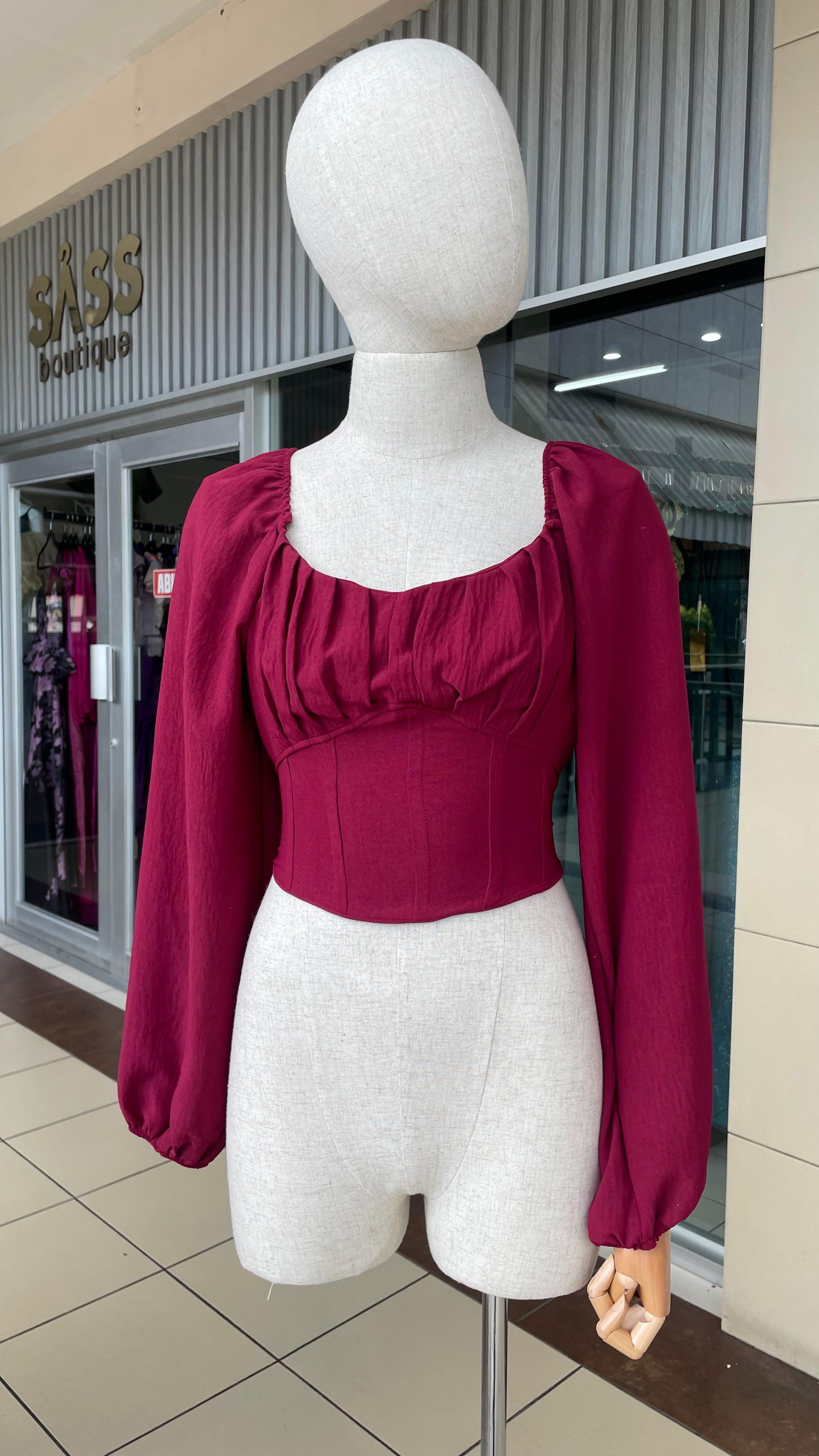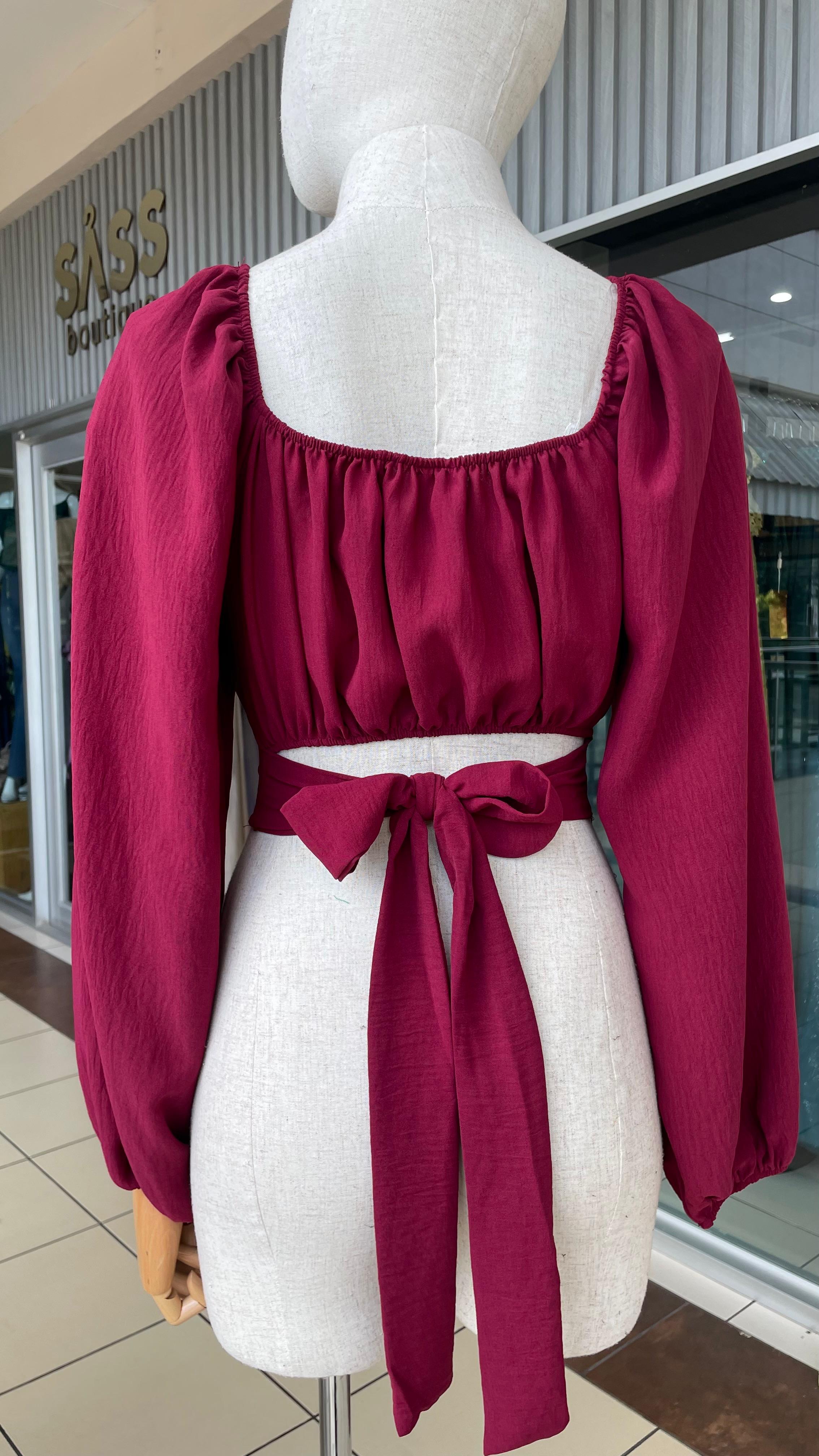 BURGUNDY CROP TOP MANGA LARGA - S está en espera y se enviará tan pronto como vuelva a estar en stock