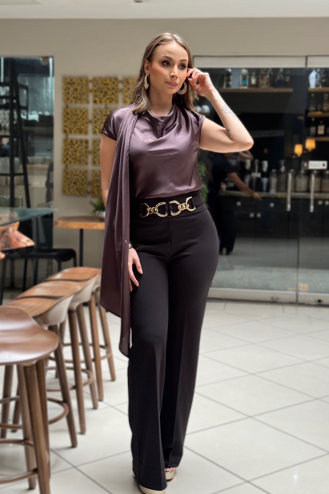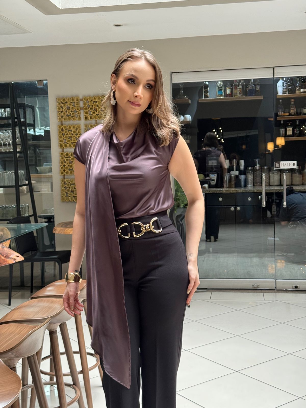CHOCOLATE BLUSA CHAL ASEDADA - S