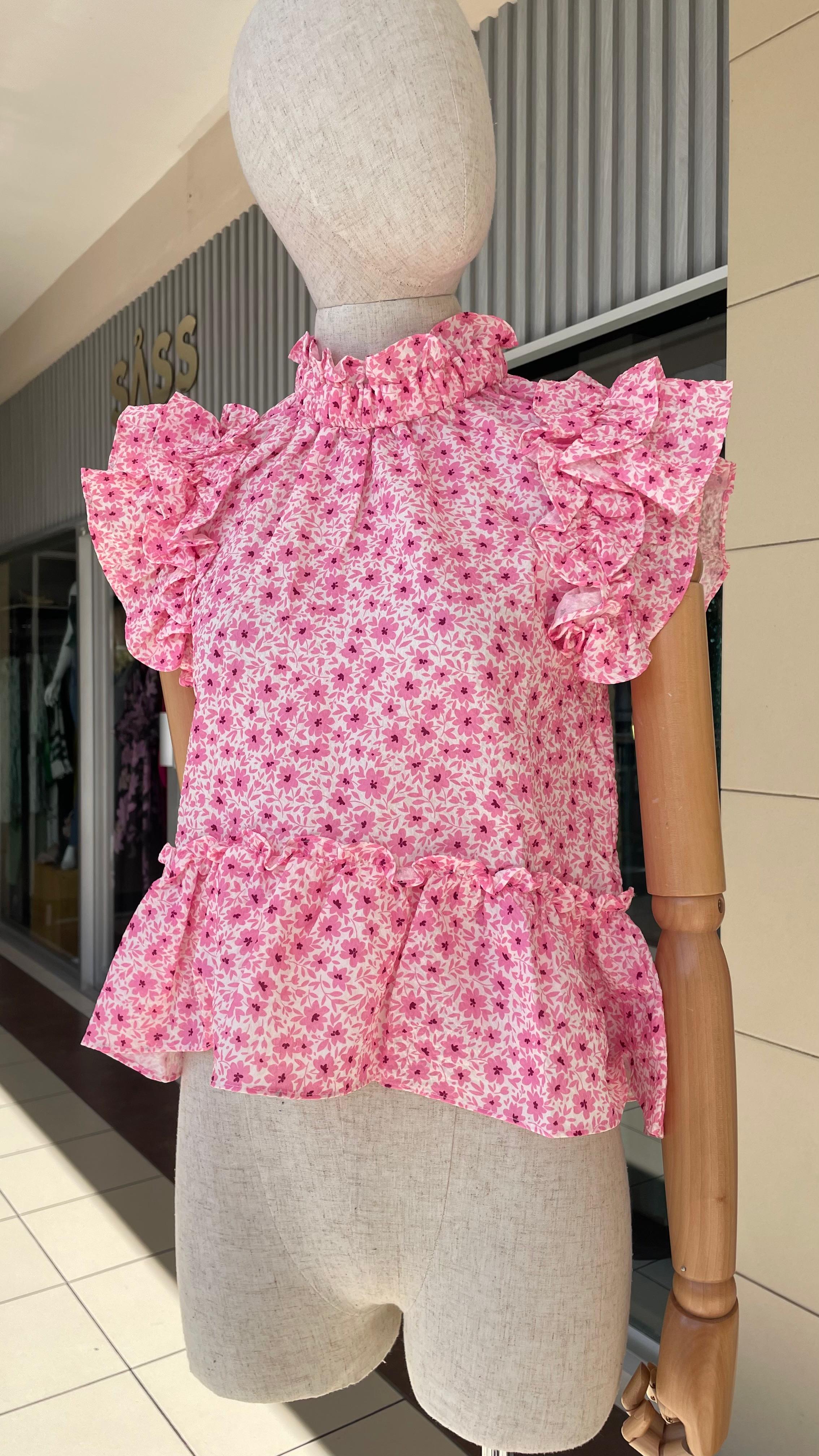 FLORES ROSADITAS MANGAS EXTRAVAGANTES CASUAL - XS está en espera y se enviará tan pronto como vuelva a estar en stock