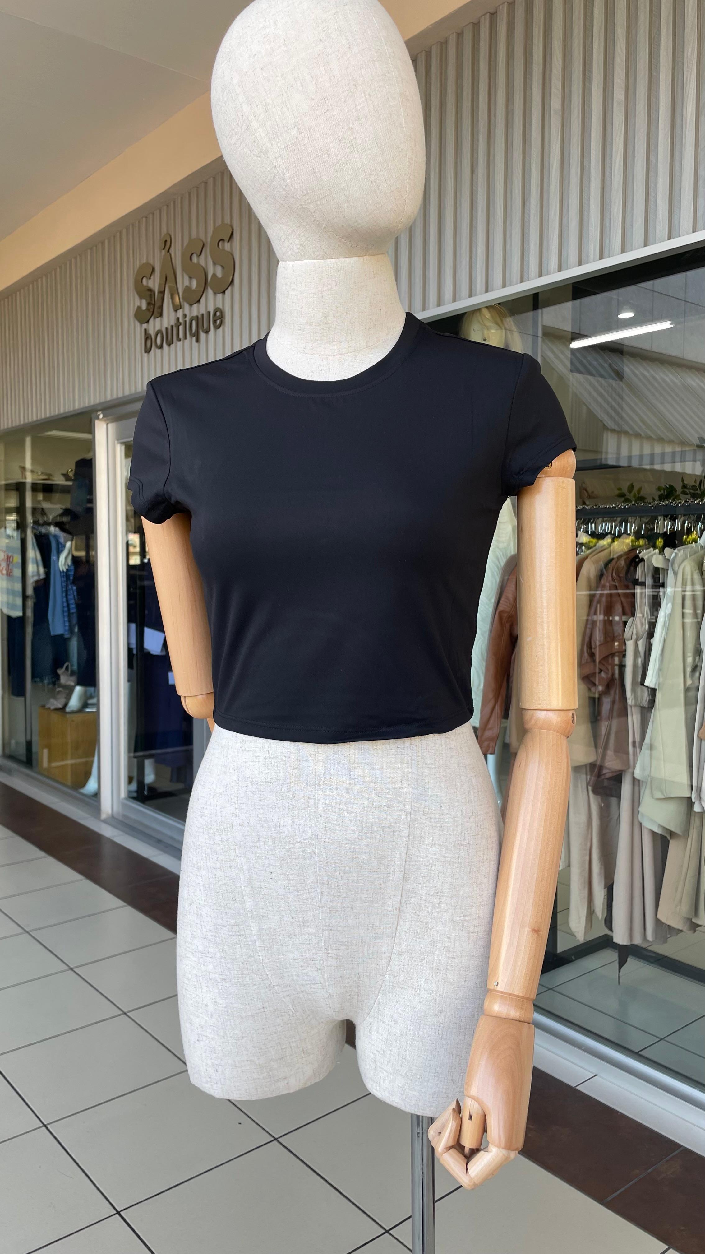 NEGRO CROP TOP MANGA CORTA
