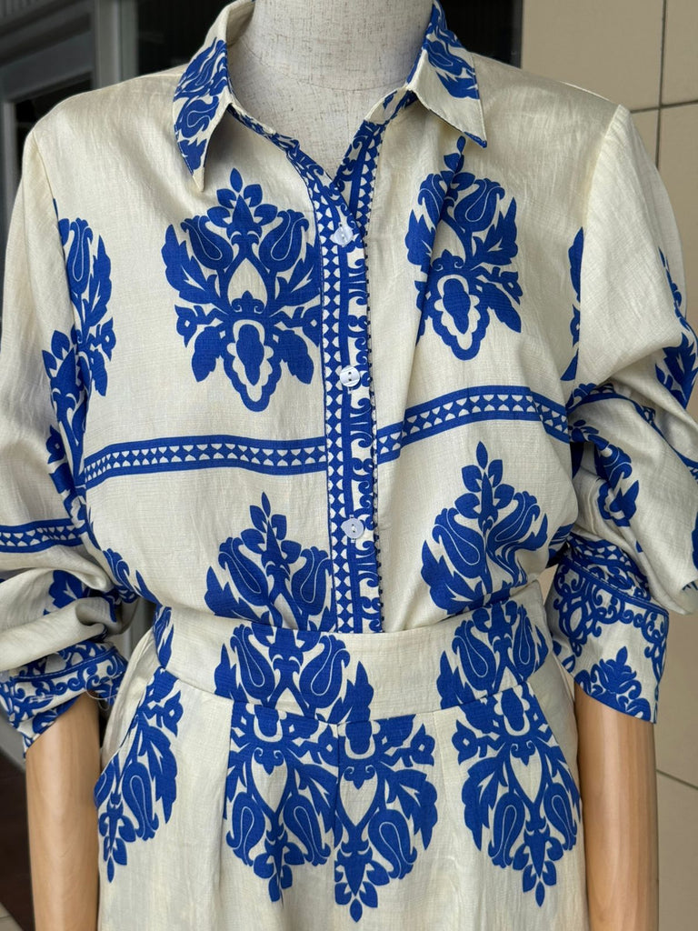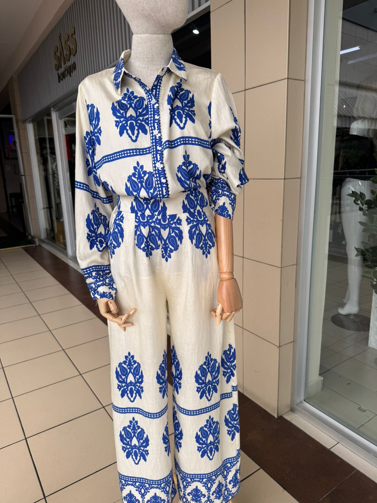AZUL ROYAL SET ESTAMPADO TRIBAL PANTALON Y BLUSA
