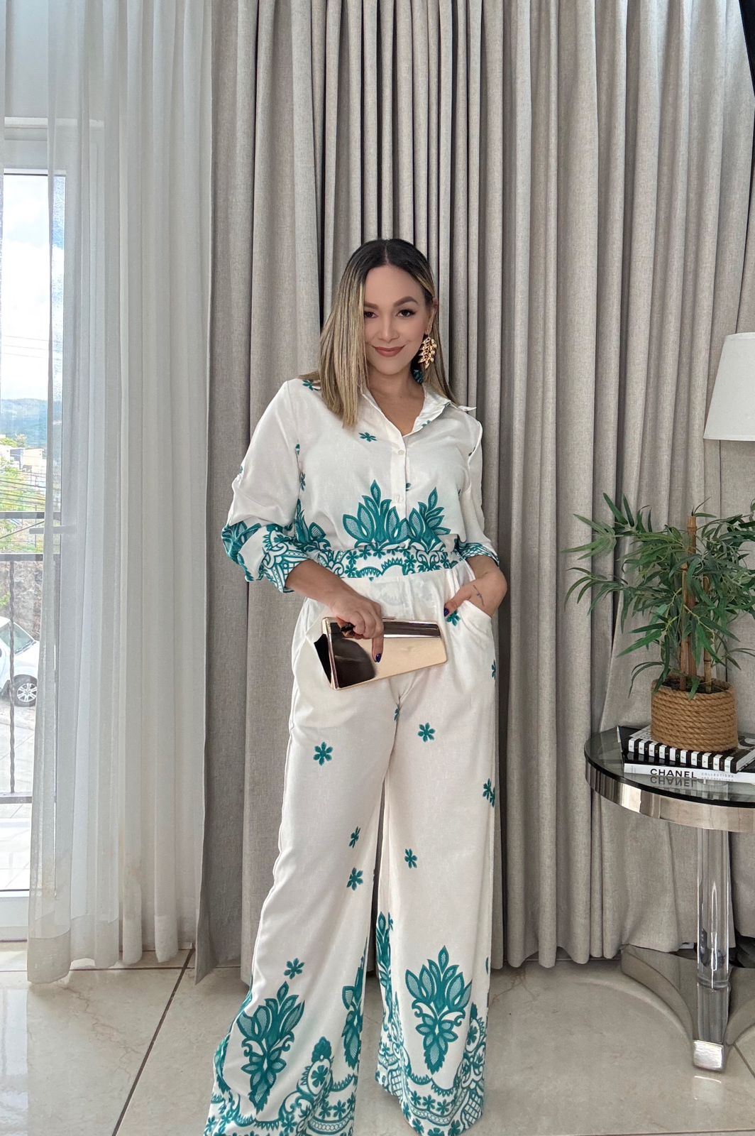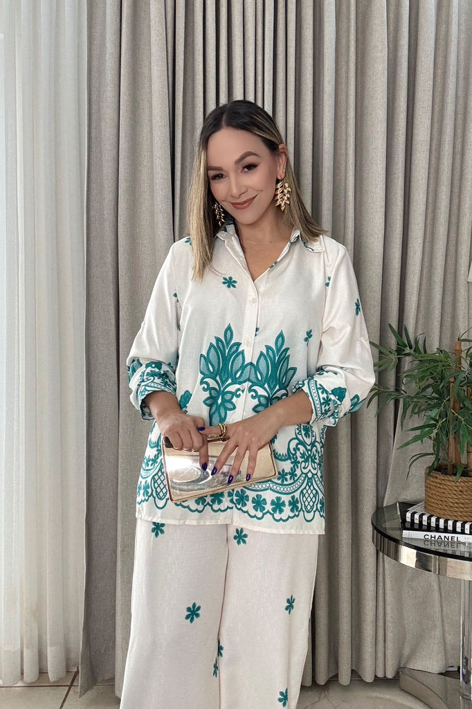 CELESTE SET ESTAMPADO PANTALON Y BLUSA