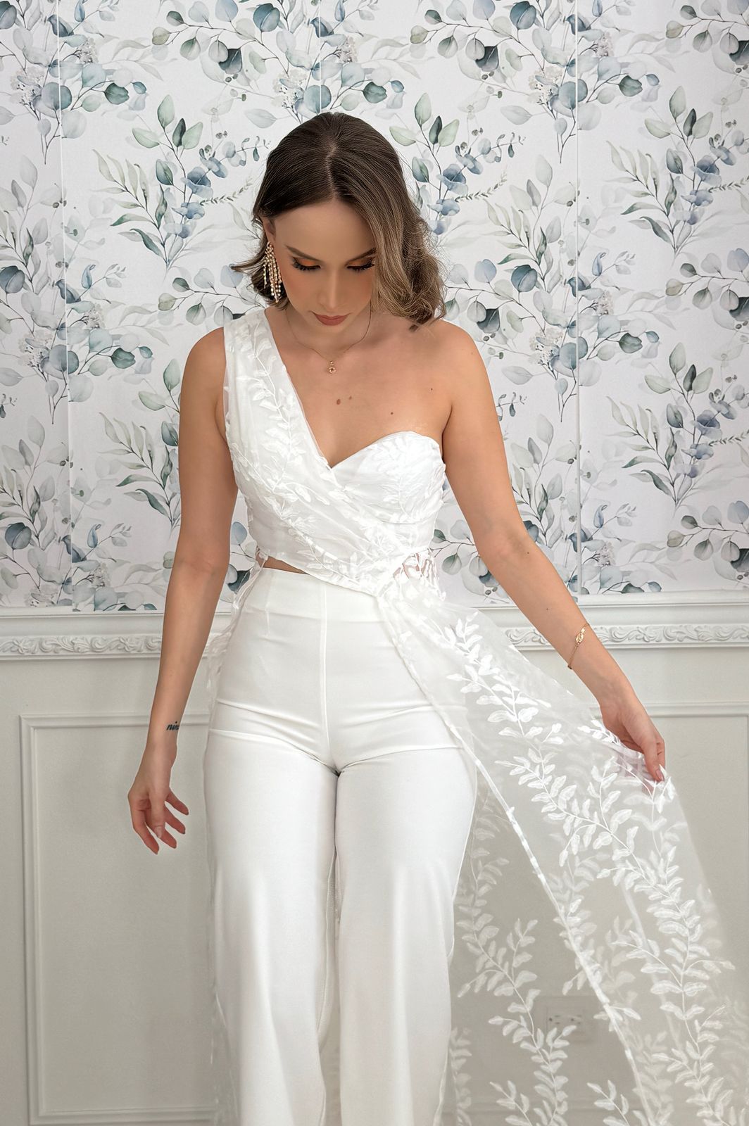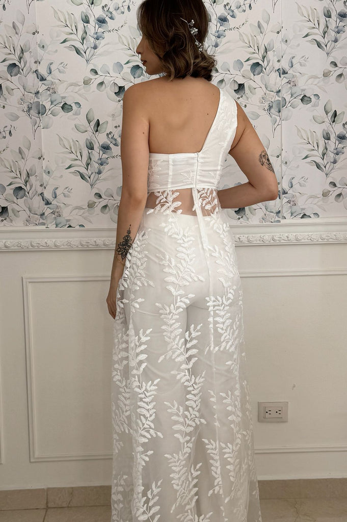 WEDDING SET PANTALON Y BLUSA CON VELO