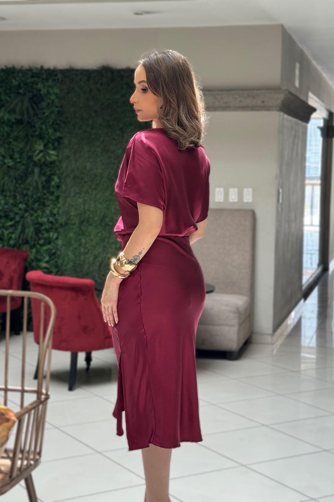 BURGUNDY MANGA AMPLIA ASEDADO MIDI - S está en espera y se enviará tan pronto como vuelva a estar en stock