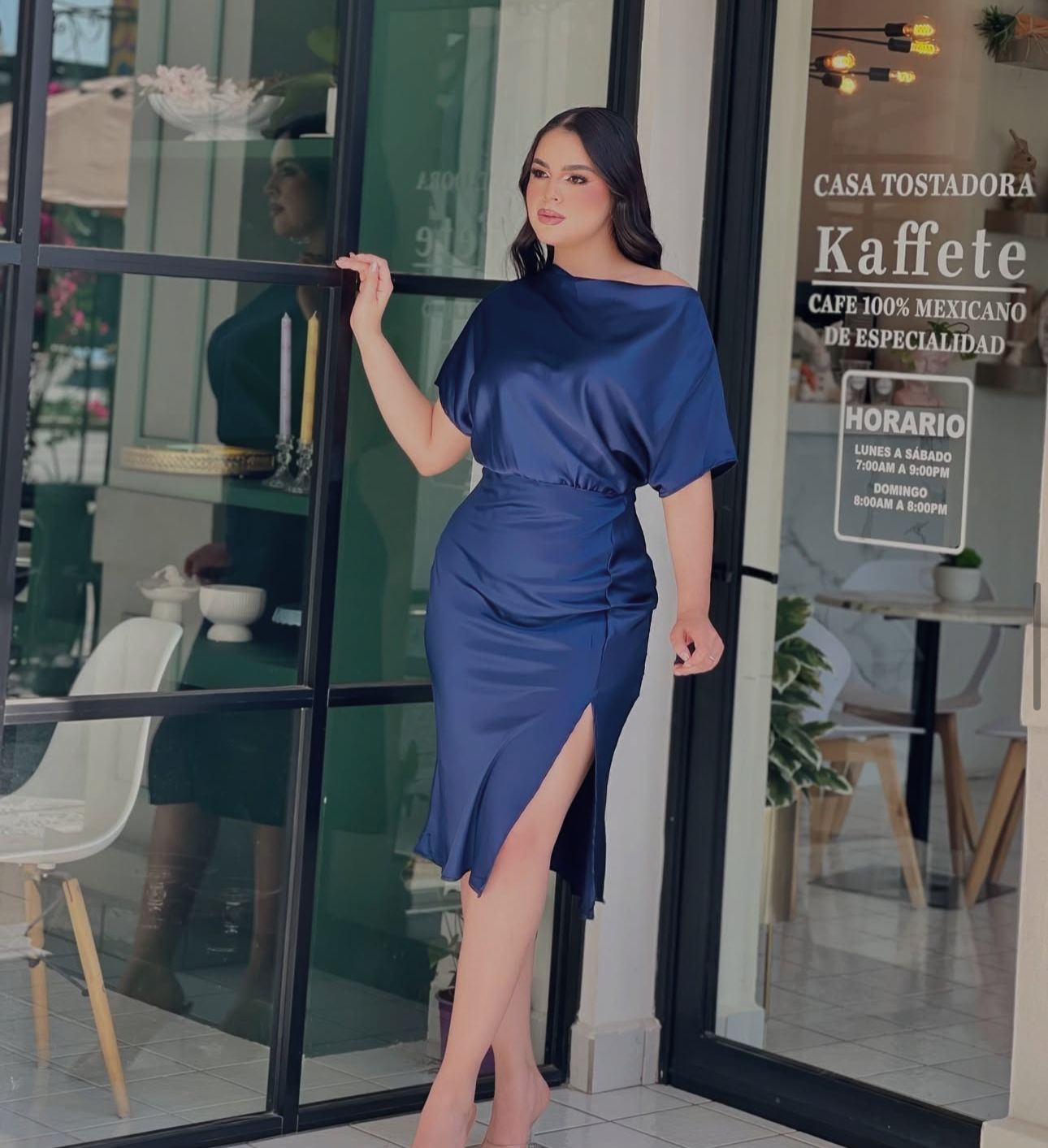 NAVY MANGA AMPLIA ASEDADO MIDI - S está en espera y se enviará tan pronto como vuelva a estar en stock
