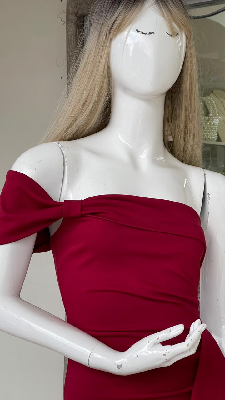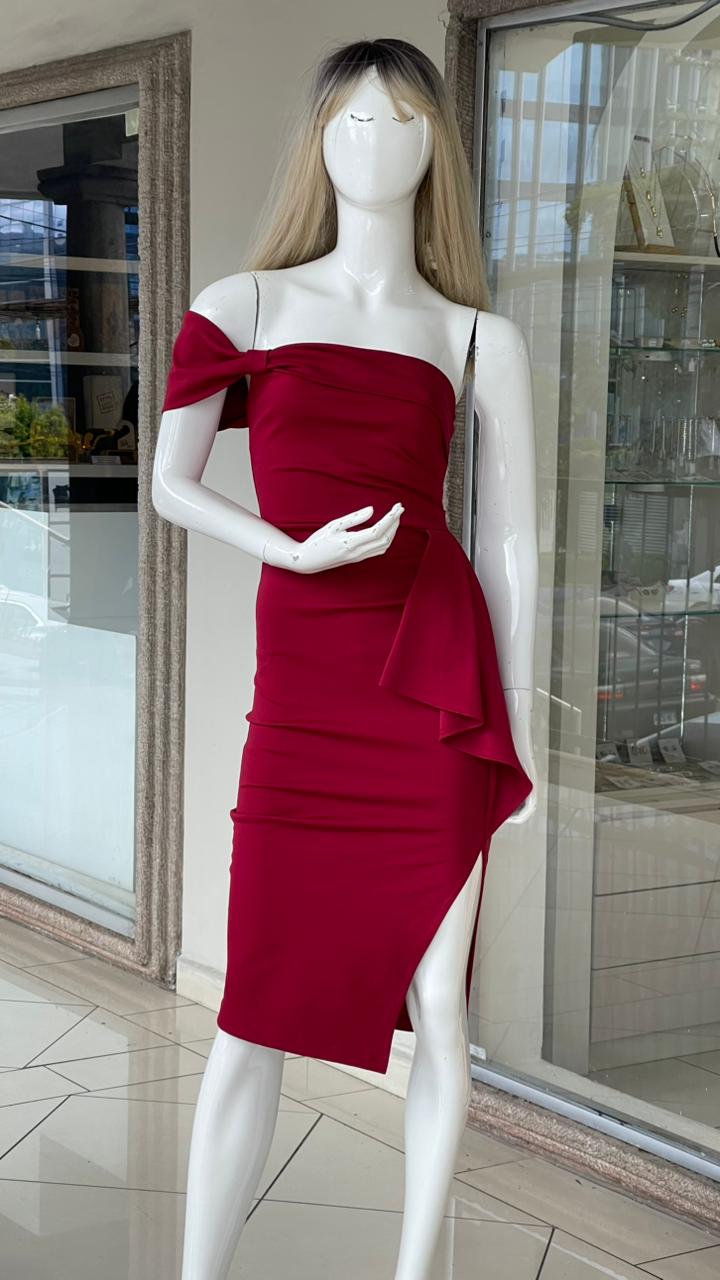 ROJO UNA MANGA DETALLE EN CINTURA - S está en espera y se enviará tan pronto como vuelva a estar en stock