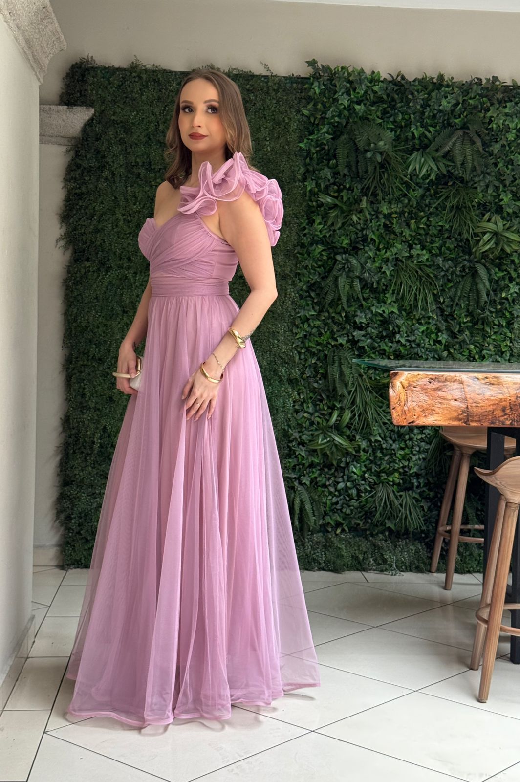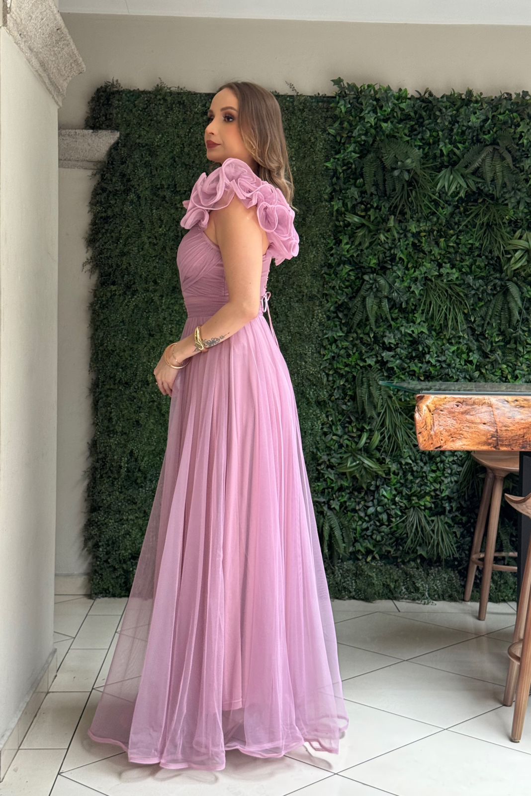 ROSA MAXI TUL VUELOS PRONUNCIADOS UNA MANGA - S está en espera y se enviará tan pronto como vuelva a estar en stock
