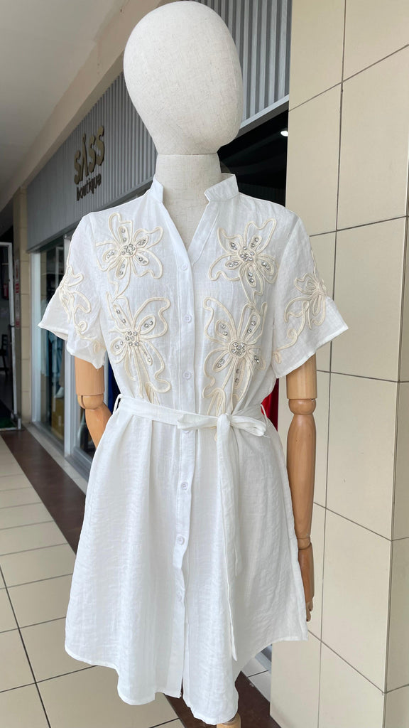 BLANCO CORTO CON BORDADO EN PECHO BOTONES