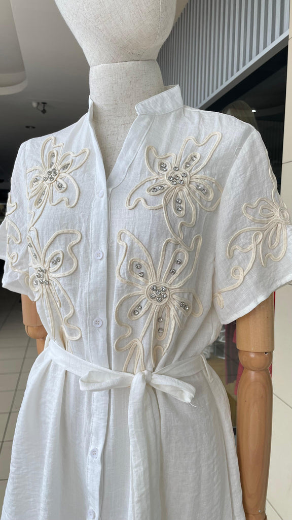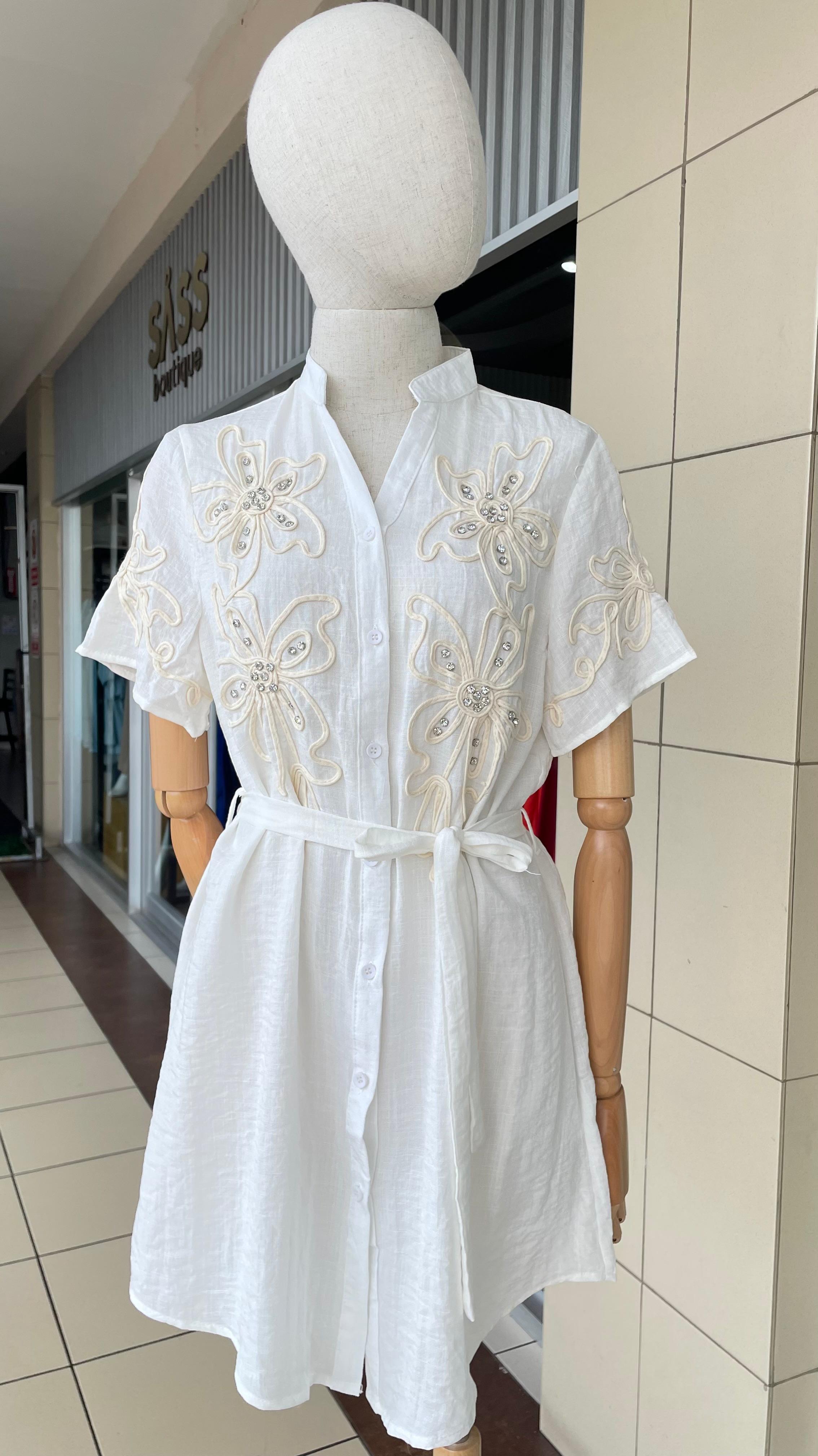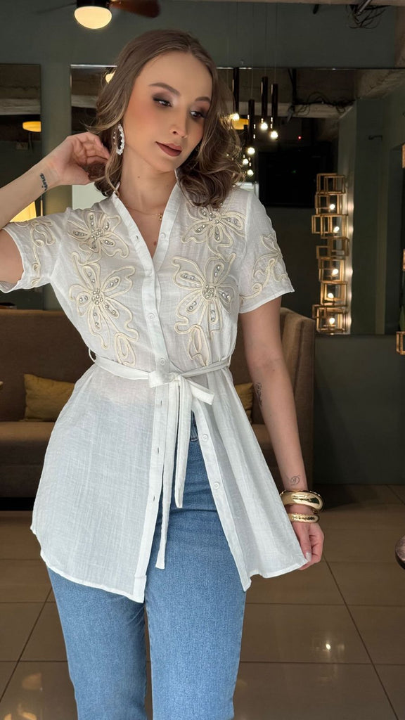 BLANCO CORTO CON BORDADO EN PECHO BOTONES - S está en espera y se enviará tan pronto como vuelva a estar en stock