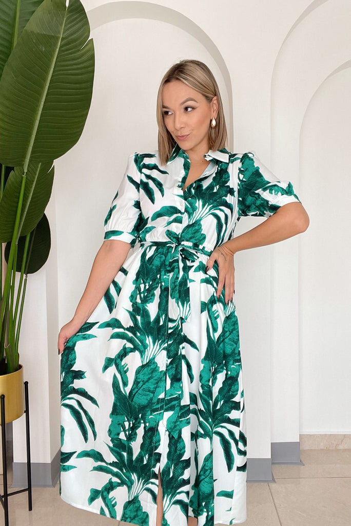 BLANCO MIDI ESTAMPADO HOJAS VERDES - S está en espera y se enviará tan pronto como vuelva a estar en stock