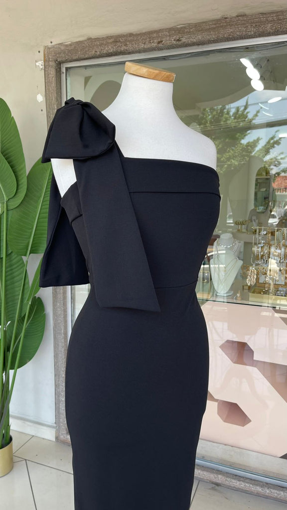 NEGRO VESTIDO MIDI COCTEL MOÑO - S está en espera y se enviará tan pronto como vuelva a estar en stock