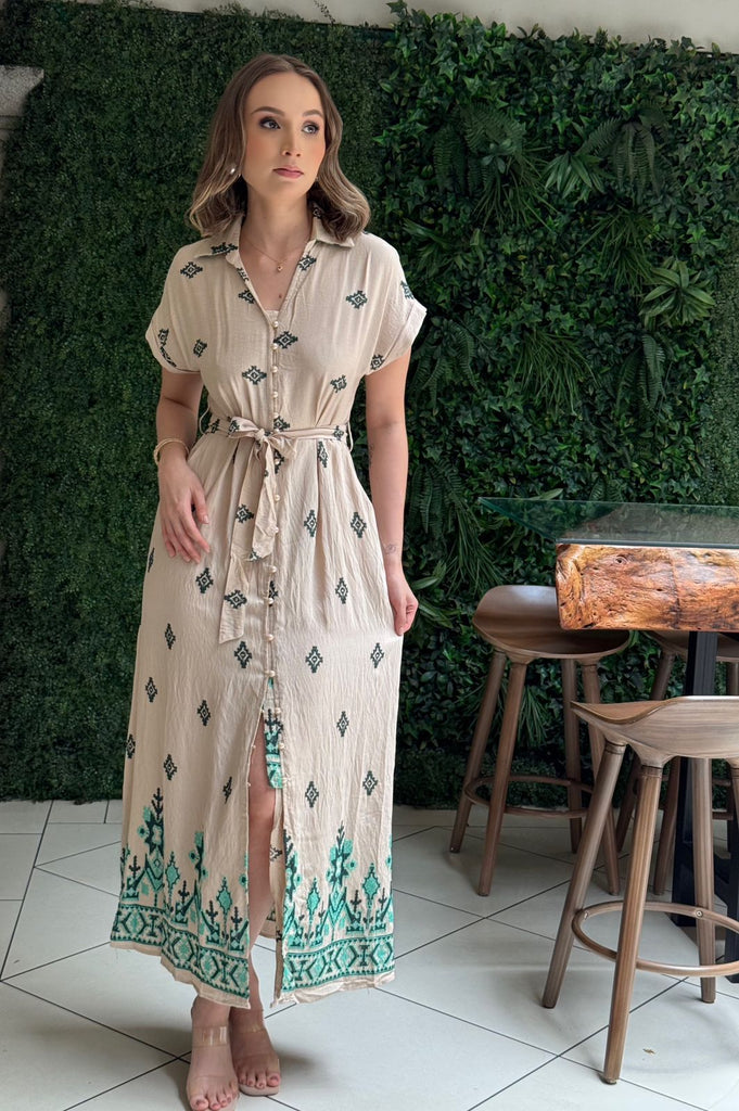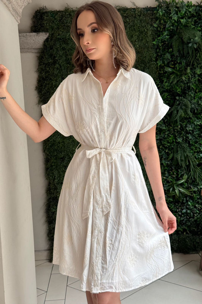 BLANCO MIDI FLORES BORDADAS EN NUDE DELICADAS LISTON BOTONES