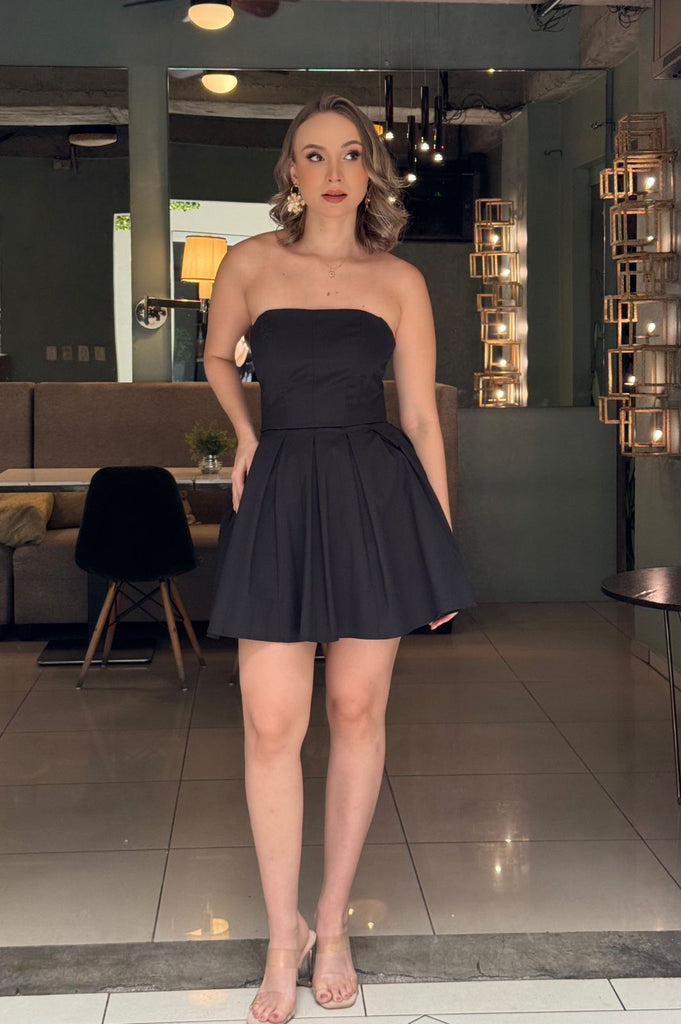 NEGRO STRAPLESS CORTO LINEA A