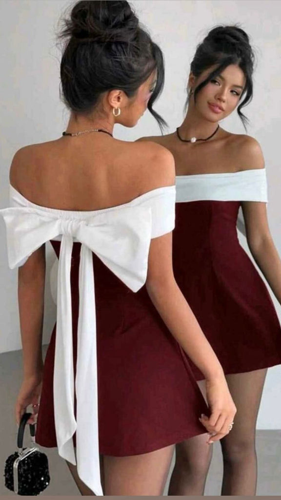 BURGUNDY CORTO LINEA A MOÑO BLANCO ATRÁS