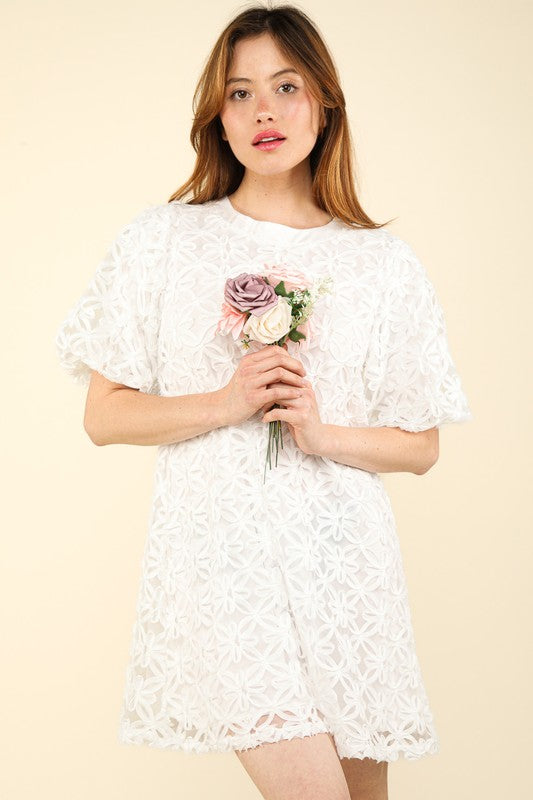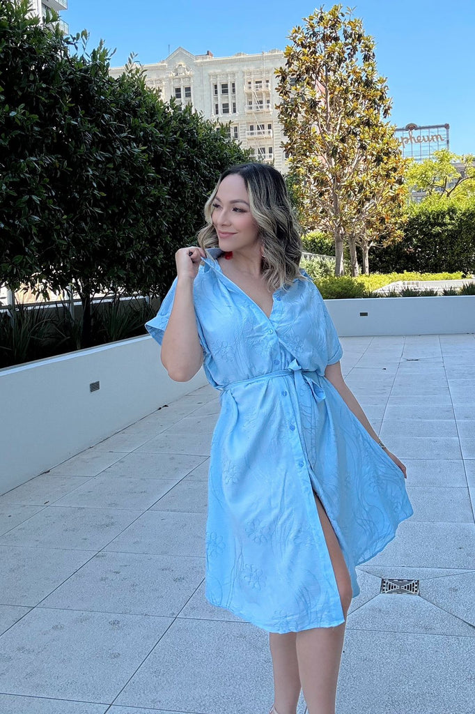 AZUL MIDI FLORES BORADAS EN AZUL DELICADAS LISTON BOTONES