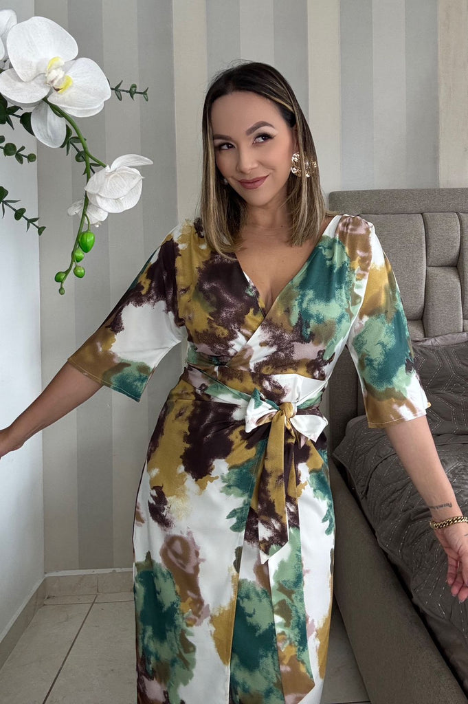 ESTAMPADO MIDI MANCHAS CAFÉ VERDE Y MOSTAZA