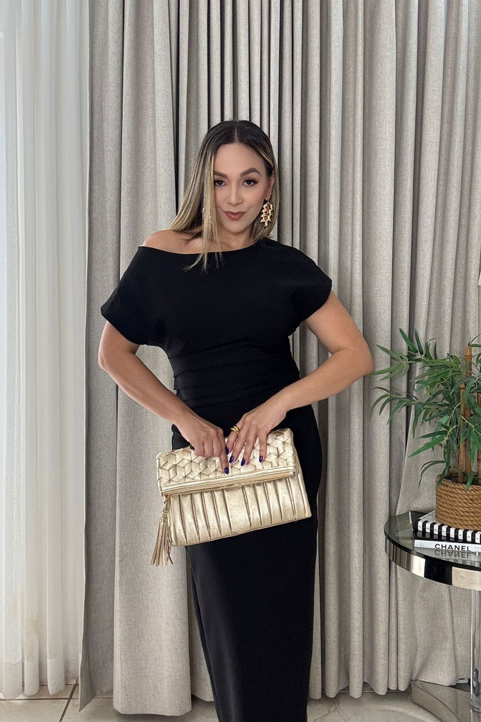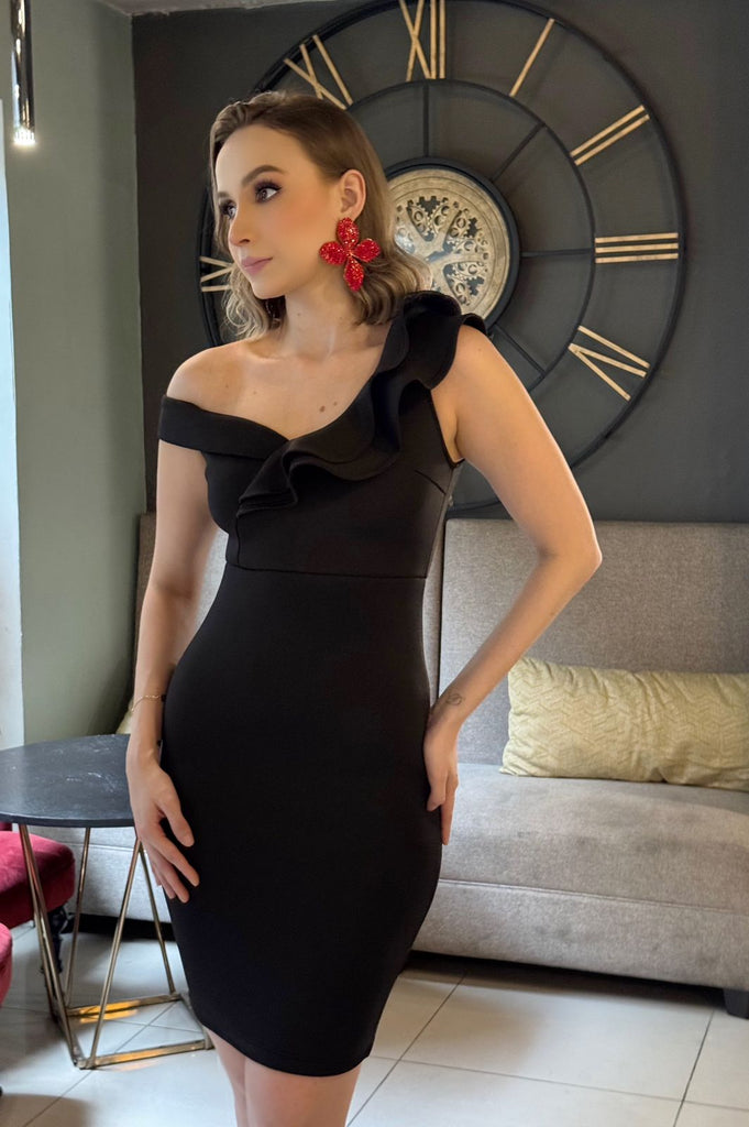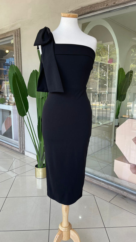 NEGRO VESTIDO MIDI COCTEL MOÑO