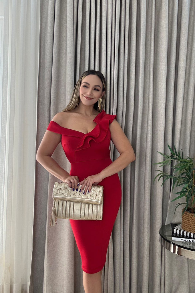FUCSIA PEGADO NUDE EN CINTURA MIDI