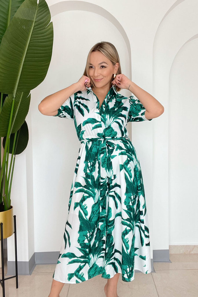 BLANCO MIDI ESTAMPADO HOJAS VERDES