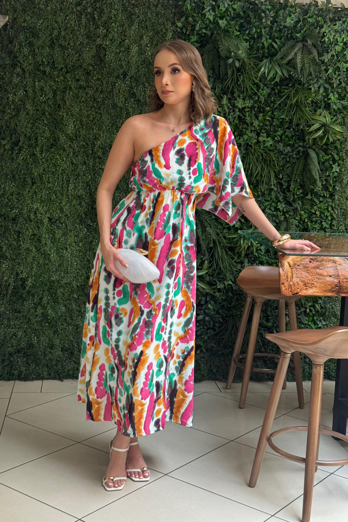 VESTIDO BLANCO CON ESTAMPADO DE FLORES Y RAYAS