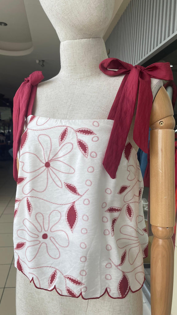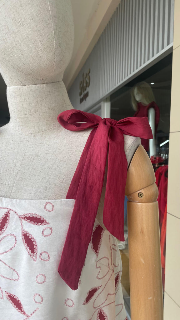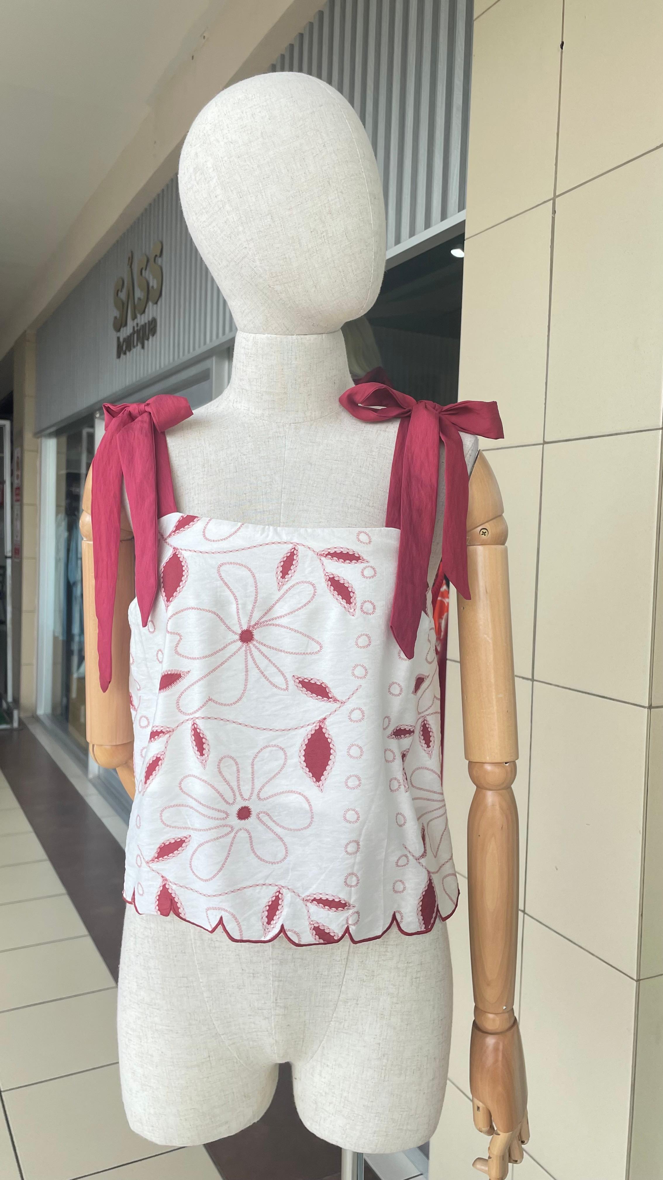 TOP CREMA ESTAMPADO EN ROJO MANGAS CON MOÑO - S está en espera y se enviará tan pronto como vuelva a estar en stock